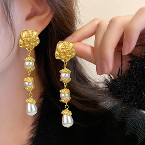不对称花朵珍珠耳钉