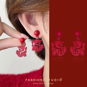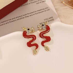 红色剪纸龙耳钉-