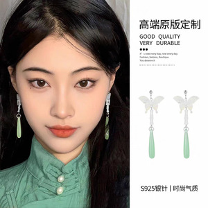 蝴蝶清河水滴耳钉