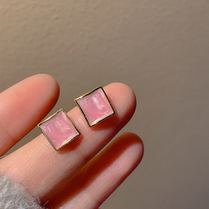 几何粉色耳钉-