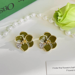 绿色滴油四瓣花耳钉