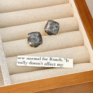 灰色水碎钻方块耳钉