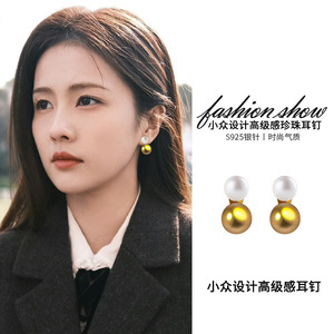 珍珠金属耳钉-S