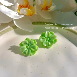 绿色花朵耳夹