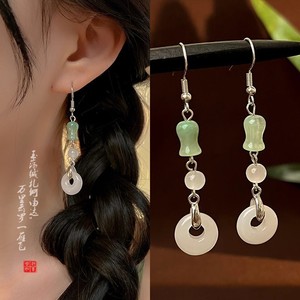 绿色竹节吊坠耳钩