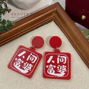 红色耳钉