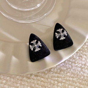 三角形黑色十字架耳钉-