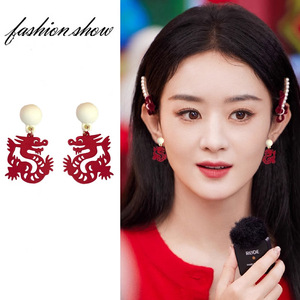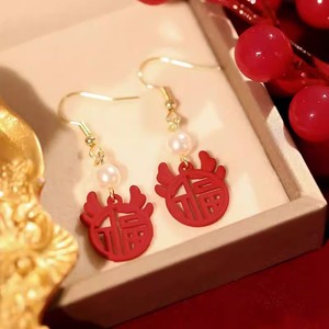 红色福字生肖龙耳勾