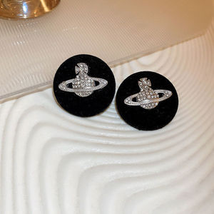 黑色圆形植绒星球耳钉