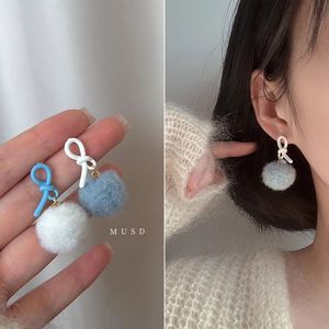 圆片毛球耳钉-