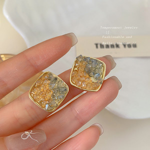 橘色渐变碎钻方块耳钉