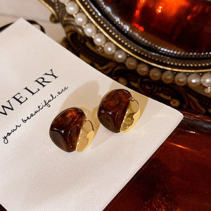 咖色不规则耳钉-
