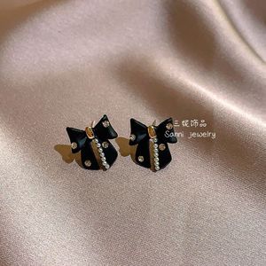 黑色水钻蝴蝶结耳钉-
