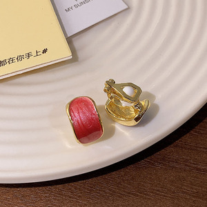 红色亮面方形耳钉-