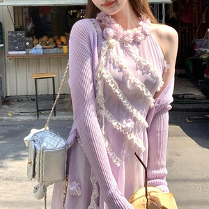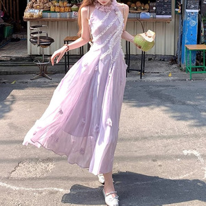 YQGFS (YQGFS) # 女性のための紫色のロングホルターネックサスペンダードレス夏フレンチレトロスリムフィットスカート