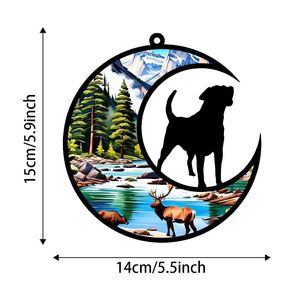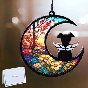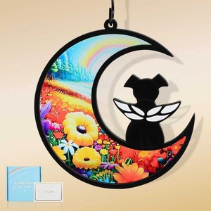 犬記念ギフト月の上の犬カラーアクリルハンギングキャッチャーペット記念シンパシーギフト