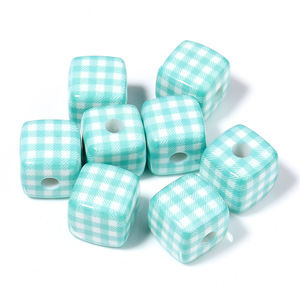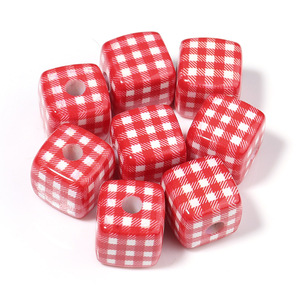 14mm 亚克力彩色格子方块珠子 DIY手机链项链饰品串珠材料配件