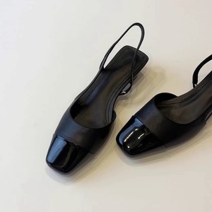 レトロ包頭カラーブロックサンダル 2025 新しいスタイルの太いヒールとスクエアトゥの靴、小さな香りの女性の靴
