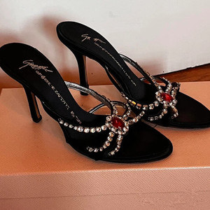 GZ 同じスタイルのハイヒール 2025 夏の新ラインストーンチェーンオープントゥサンダルレッドスパイダージェムストーンサンダル女性のスティレットヒール