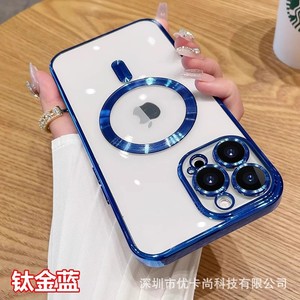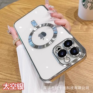 iPhone17promax 電気メッキ CD パターン磁気電話ケース Apple 16 透明オールインクルーシブ TPU 保護カバーに適しています。