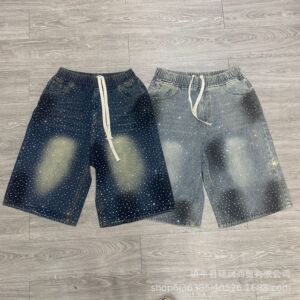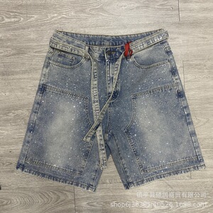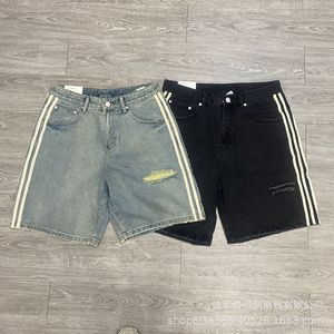 2025年新作 シンプル トレンド アメリカン パリ風 ウォッシュ加工 リップド エッジ スリーストライプス ストライプ メンズ レディース デニム ショートパンツ