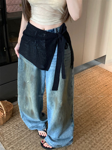 シックなデザインの中空ニットスカート、女性用夏の新しいスタイルのレイヤードレースアップバットカーテン、ファッショナブルで多用途なショートスカート