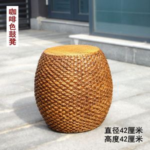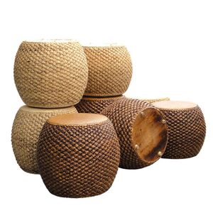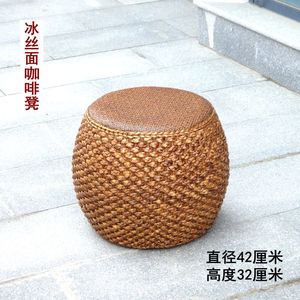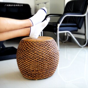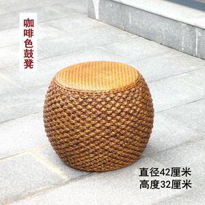 N5 家庭用小さな籐スツール籐織りラウンドドラムスツールシンプルなソファスツール低スツール無垢材靴交換スツールレジャー座り