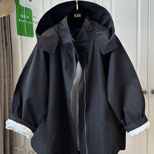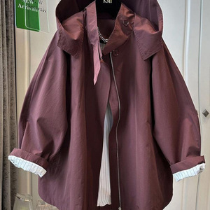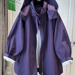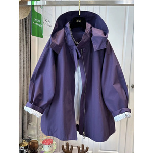 ファットMM 150kg 大きいサイズ ルーズデザイン ニッチ カジュアル フード付きジャケット レディース 春秋 パープル ウインドブレーカー ジャケット