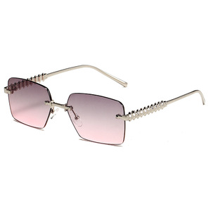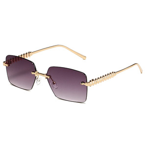 新しいファッションサングラス、チェーンテンプル、ラージフレームレトロサングラス、ハイエンドフレームレスカットエッジカジュアルサングラス