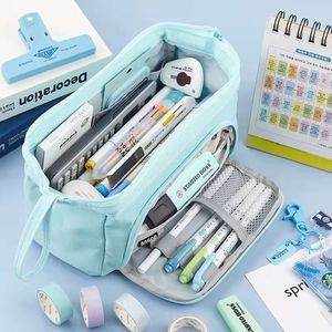 国境を越えた多機能二層文具筆箱ポータブル大容量筆箱大開口小中学生筆箱