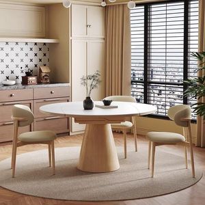 中世スタイルのレトロな無垢材のスレートダイニングテーブルと椅子の組み合わせ、家庭用の小さなアパート用、モダンでシンプルな格納式ラウンドダイニングテーブル
