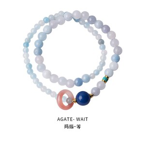 42 # ブレスレット - ライトサファイアとホワイトメノウ - 絶妙なギフトボックス