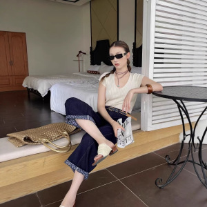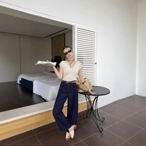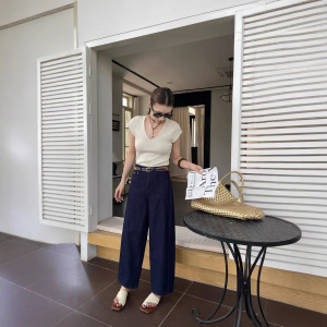 上海ラネージュ韓国風ジーンズ女性用 2025 夏新作小柄ストレートワイドレッグナローバージョン 9 点パンツ 250200