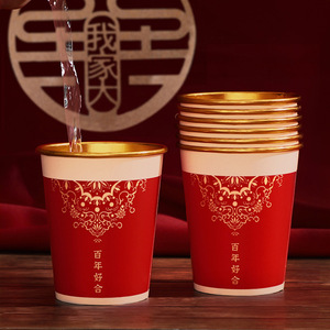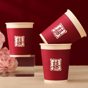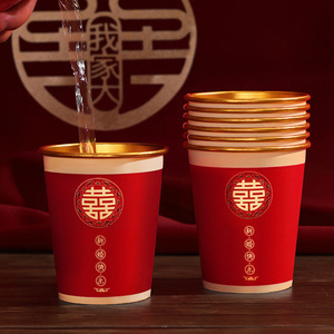 结婚纸杯婚礼家用喜字杯订婚喜事红色水杯婚庆婚宴用品一次性杯子