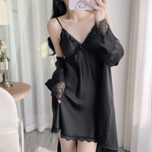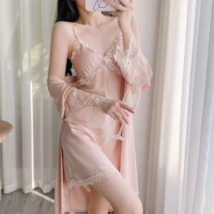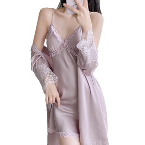 ソースメーカー氷と雪のシルク女性の夏のネグリジェサスペンダー春と秋のネグリジェ模擬シルクパジャマ 2 点セットライブドロップシッピング