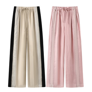 現物2025年夏の新型シンプルな衝突色のつなぎ合わせひもひも付きカジュアルパンツ2J2Q437