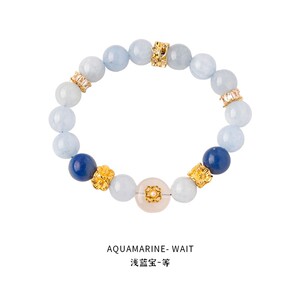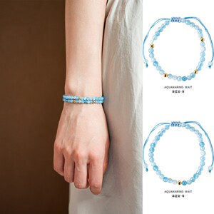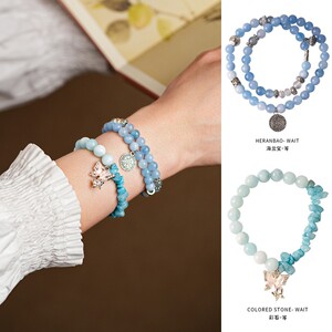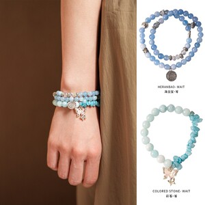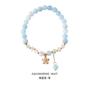 海藍宝数珠引きブレスレット国潮軽豪華高級感手串通勤気質百合手飾り女