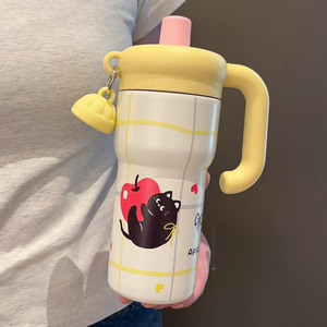 新型アニメ保温カップかわいい子猫大容量氷覇カップ高颜値女子ハンドルカップストローカップ