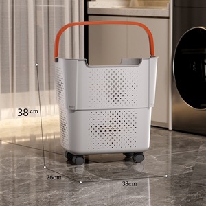 二段式ランドリーバスケット(キャスター付き) - 高級グレー
