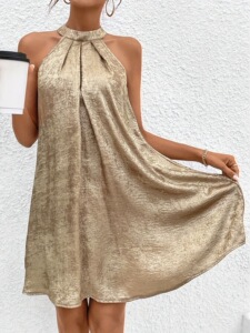 女性のためのエレガントなゴールデン ホルター ネック スリーブ ドレス越境