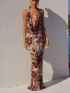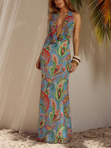 貿易アマゾン絞り染めグラデーションセクシーなバックレスホリデードレス2025夏の新しいサスペンダーロングスカート婦人服