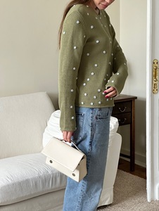 丸首のセーターのニットのカーディガンの花の立体の薄いニットの長袖のカジュアルでシンプルなファッションのボタンのコート