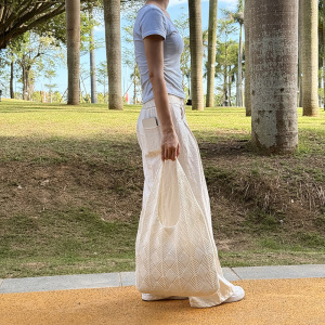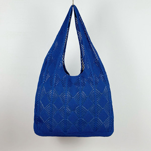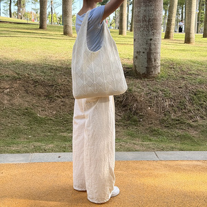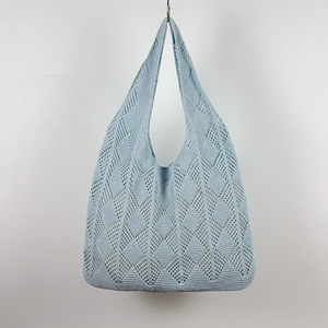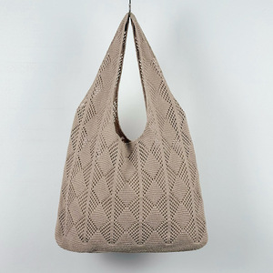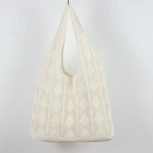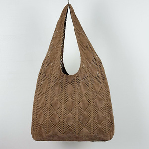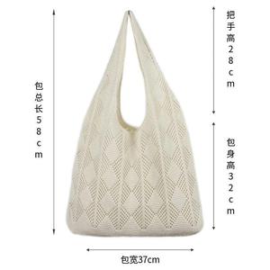 菱形の中空大容量ニットバッグ、女性用、無地、シンプルな通勤用織りバッグ、多用途ショルダーバッグ、中空デザイン