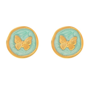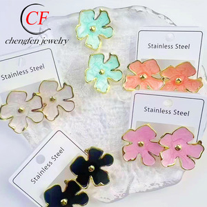 クロスボーダーエポキシチタン鋼イヤリングパーソナライズされた幾何学的な色の花五芒星愛オイルステンレス鋼ジュエリー女性のための