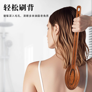 工場直販長柄豚毛バスブラシ無垢材ハンドルバスブラシ豚毛泥こすり背中こすりバスブラシバックブラシ
