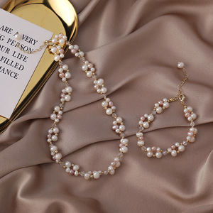 彩色淡水珍珠拼接手链气质网红设计感水晶缠绕珍珠项链手链项链女