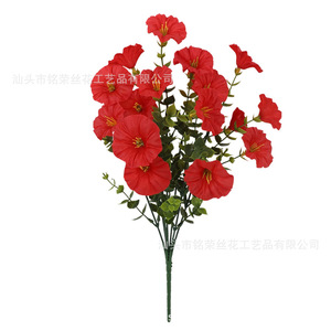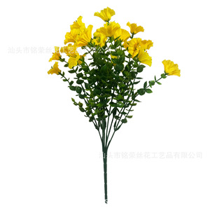 クロスボーダー7頭のユーカリ朝顔の花のラッパの花のシミュレーションの花の人工の造花は屋外の花園の家の装飾の束を持ちます。