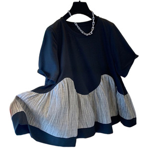 ユニークで超見栄えの良いフレンチスタイルのフィッシュテールタイダイ半袖Tシャツベビードールシャツルーズファッショントップ女性の夏の新しいスタイル