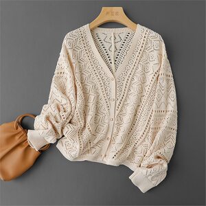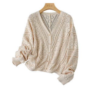周YU彤同款!春季法式镂空宽松长袖针织衫开衫女外套春秋款上衣