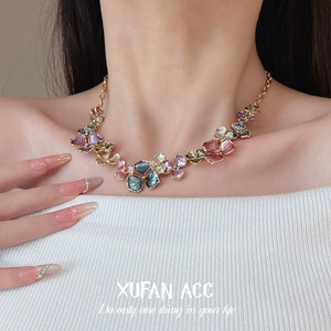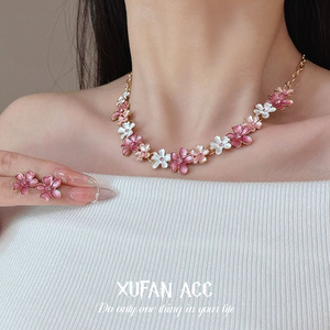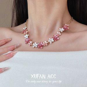女性用の新鮮なアイスブルーの花のネックレス、ファッショナブルで甘いニッチな気質、軽い贅沢、多用途で絶妙な鎖骨チェーン